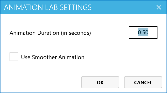 You can also adjust the length of the animation, or enable a smoother (but slightly more resource-intensive) animation method from the settings dialog: