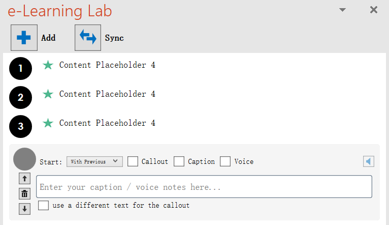 before moving onto a different slide.To change the words of a caption/callout/audio, simply edit the corresponding text in the eLL task pane and