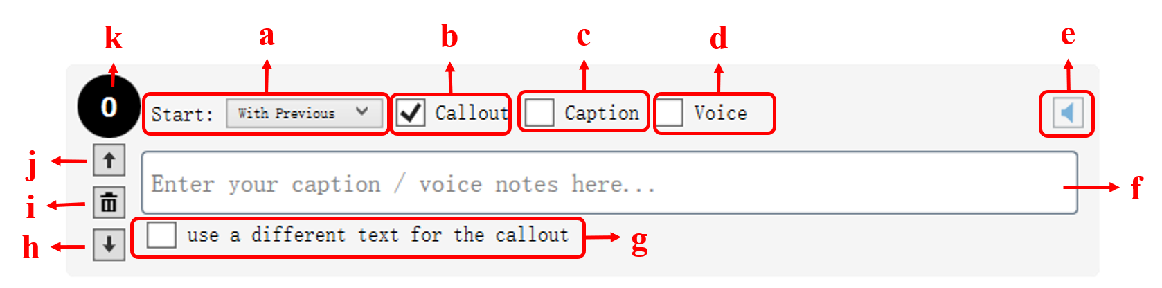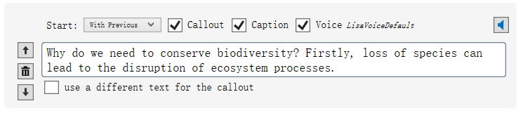 g. Use a different text for the callout: Tick this checkbox if you want callout to have a different text from the caption/audio.