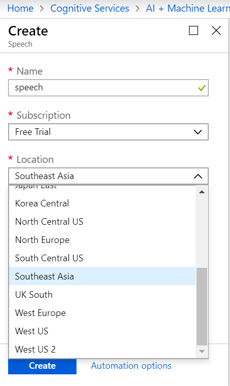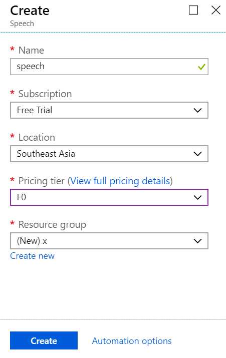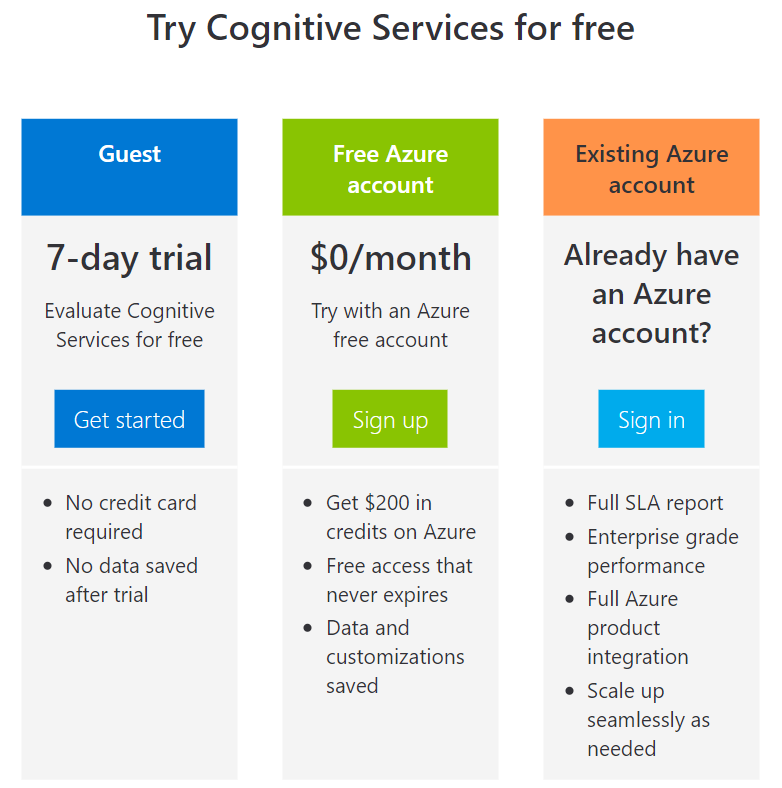 To create an Azure text-to-speech (TTS for short) service instance, there are two options available. The first option creates a free Azure trial for 3 months. While this is the simpler, you will have to create a proper Azure account (i.e., option 2) after the trial expires.