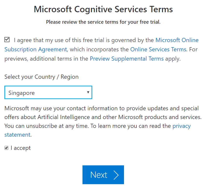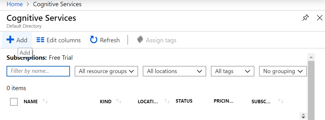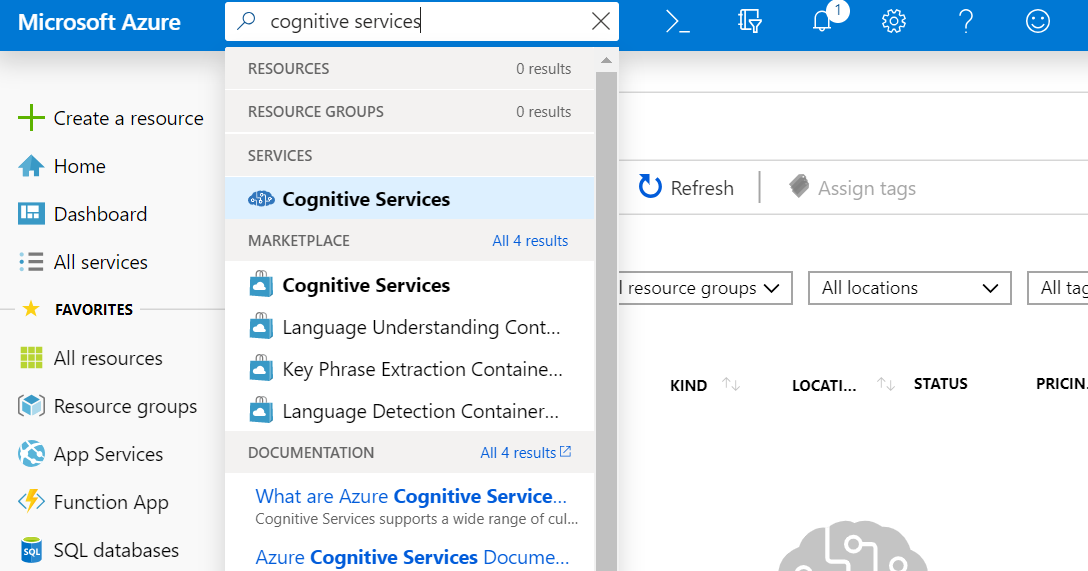 You will be presented with a page similar to the one attached below. Type in Cognitive Services