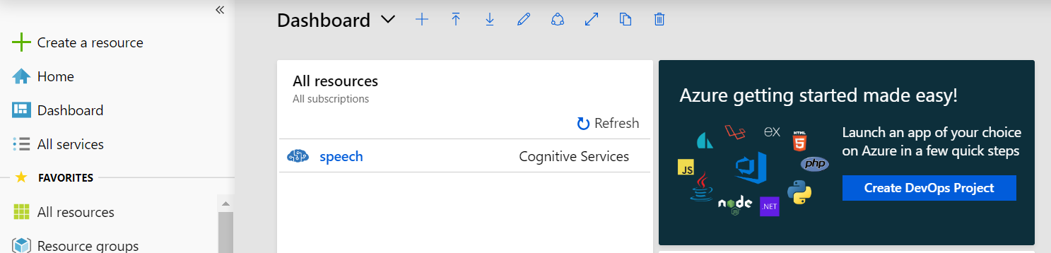 panel. The instance that you just created will appear below. Note that your instance may have a different name than speech