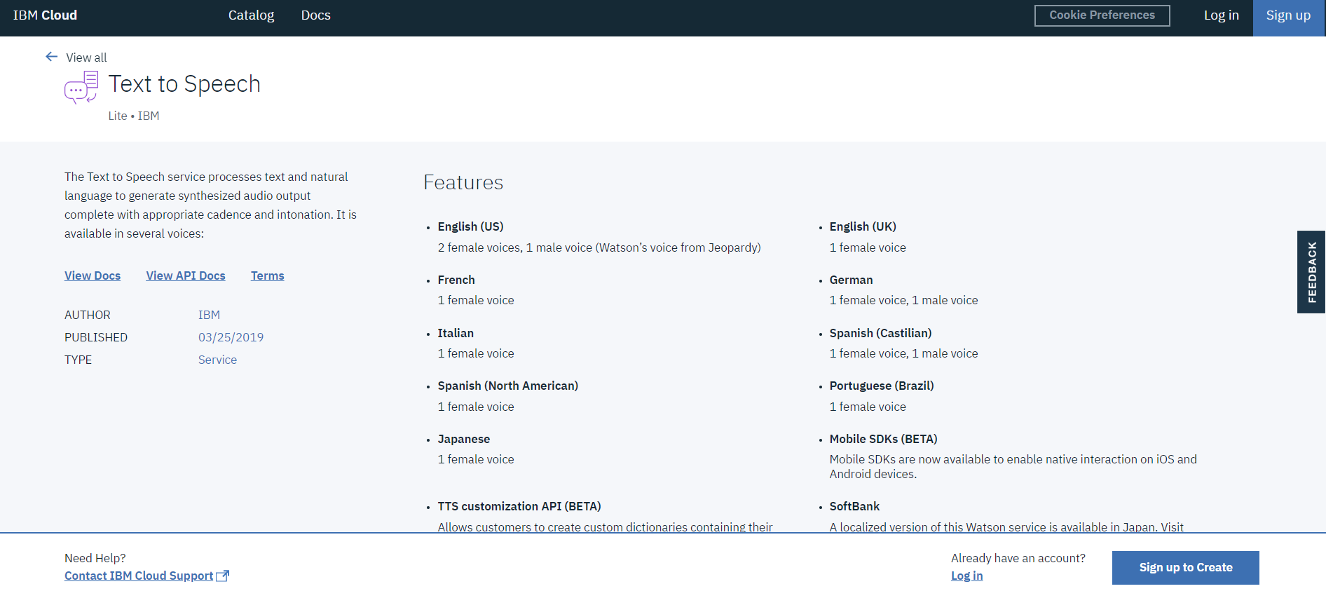 if you already have a Watson account. Otherwise, click on Sign up to Create