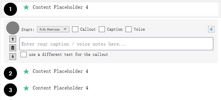 There are two types of items on eLL. Normal item is a group of regular animations that cluster under the same click number on the animation pane. An example custom item has the following UI: