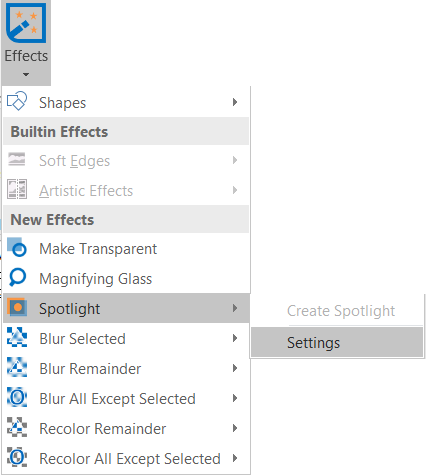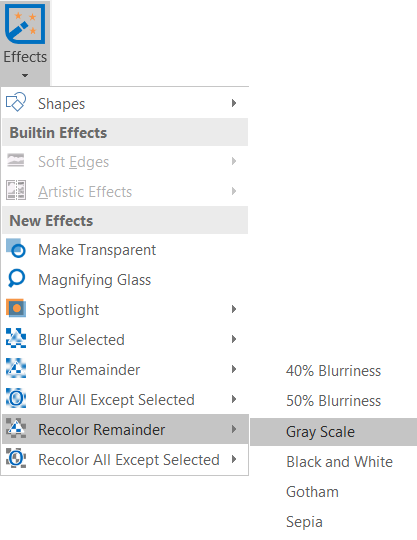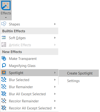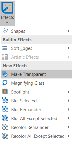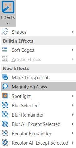 The Effects Lab makes it easy to draw attention to portions of the slide through blur, color, or magnification effects, and also provides a convenient way to access several of PowerPoint's built-in image effects.