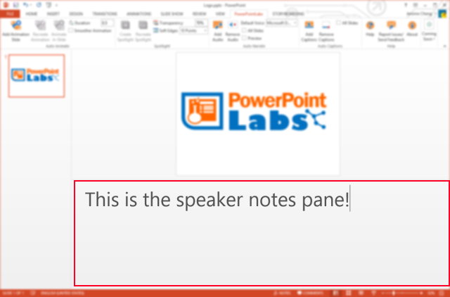 Narrations Lab uses the text entered in the Speaker Notes pane below each slide to generate audio: