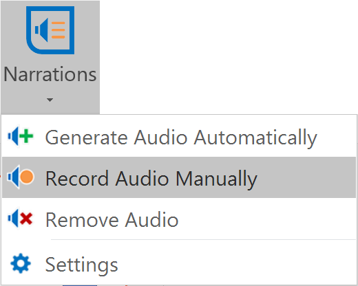 Even if you haven't used Narrations Lab to create synthesized narration, you can still record your own narration easily using the same process. Simply enter your speech into the speaker notes pane as if you were going to use Auto Narrate (including AfterClick