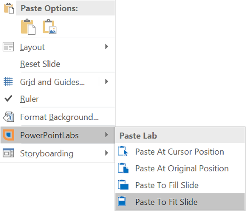 Paste To Fit Slide helps to resize the object to the maximum size that can fit within the slide, before pasting the copied object.
