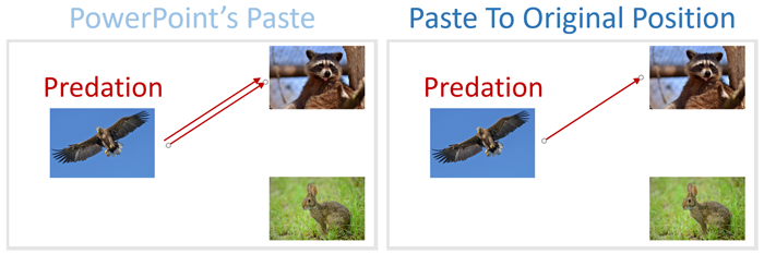 When you paste an object on the slide, its position may be slightly shifted if the original object is at the same position on the slide. Paste At Original Position pastes objects at their positions on the slide exactly where they were copied.