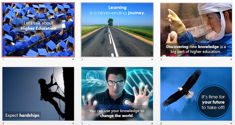 Tip: To change the picture used in any of slide previews, click on the slide preview in concern and then click on the picture you want to use.