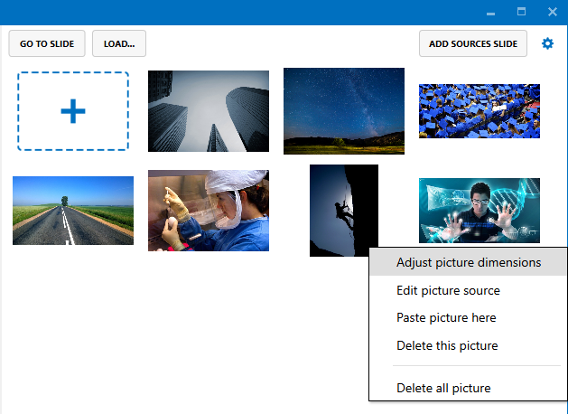 If this is the first time PSL being used, you’ll have the two default pictures only. To add more, do one of the following.