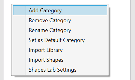 To create a new category, right-click on an empty space in the Shapes Lab and select Add Category