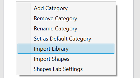 You can import single shapes, or import an entire library. To do so, right-click on an empty space in the Shapes Lab, then select Import Shapes or Import Library.