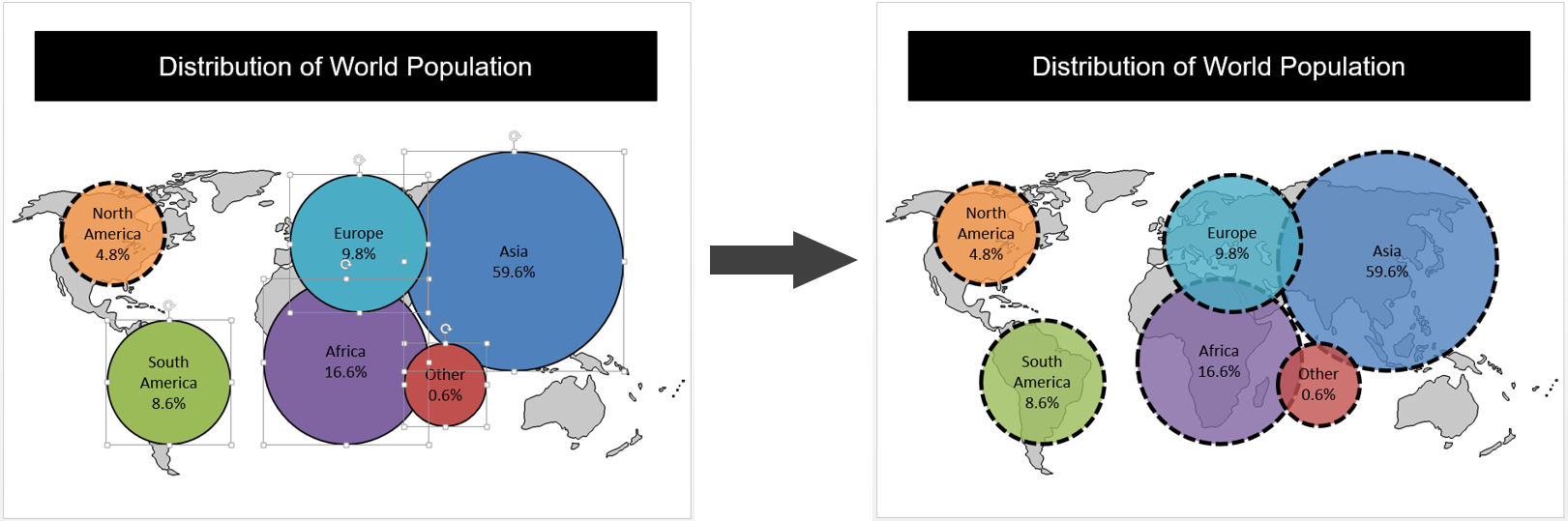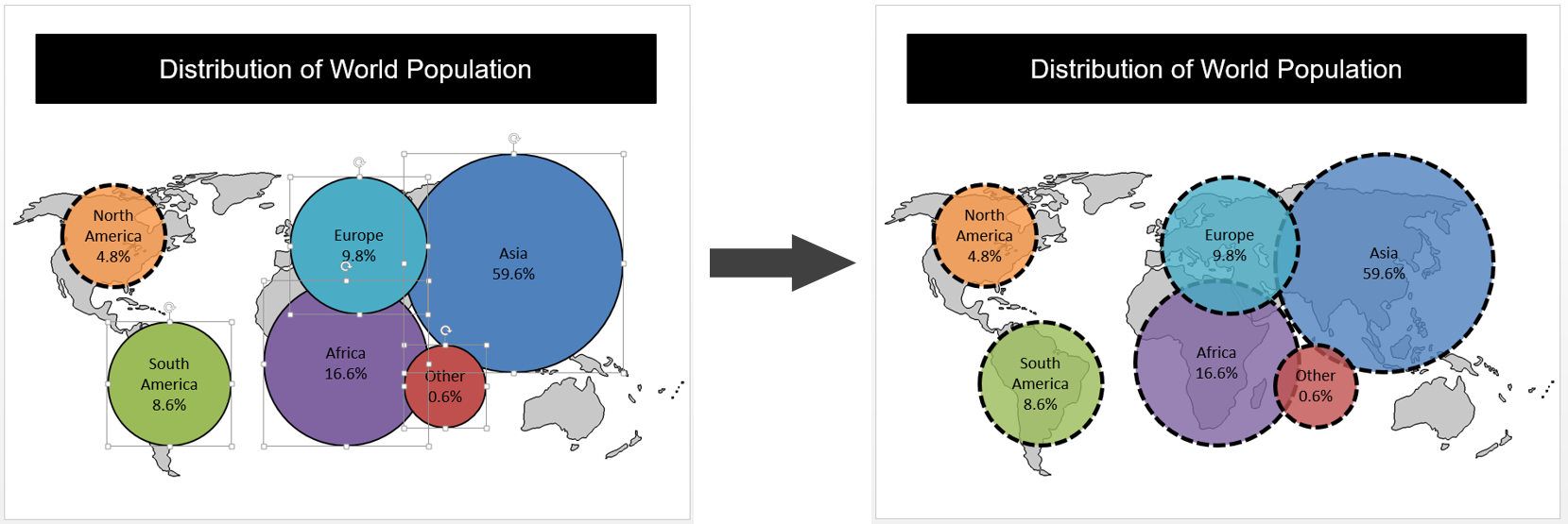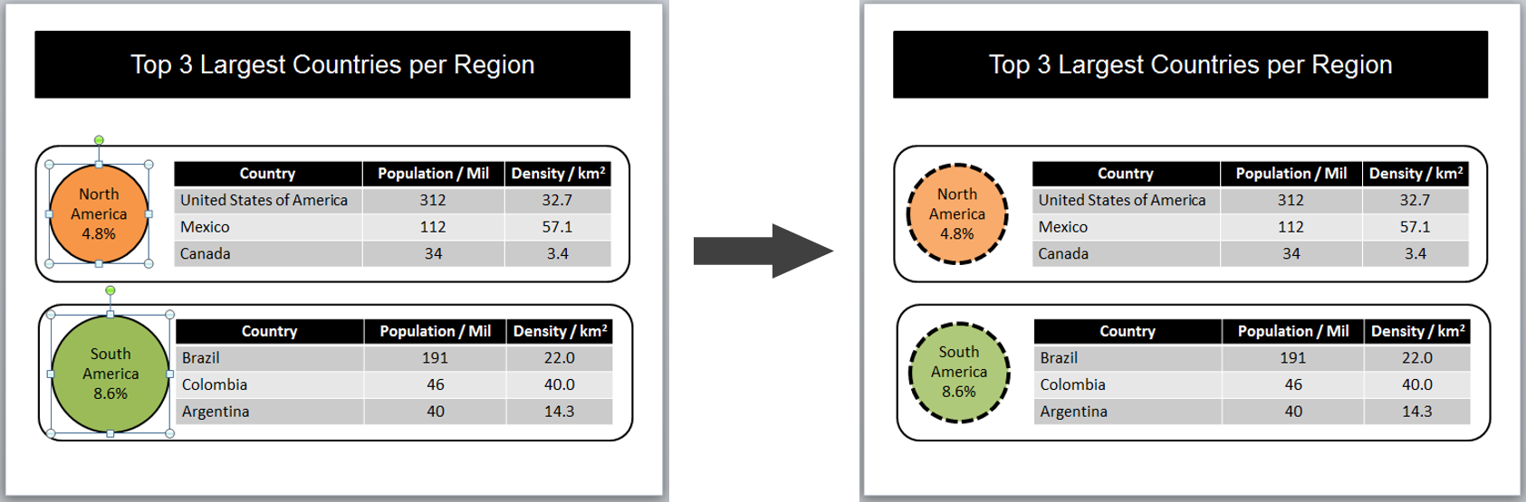 Suppose you have the following two slides and you are trying to tweak the formatting of the circles.