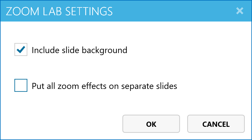 Note: if you'd like, you can have the animations be inserted on separate slides instead. Just open the Zoom Lab settings dialog, and check the